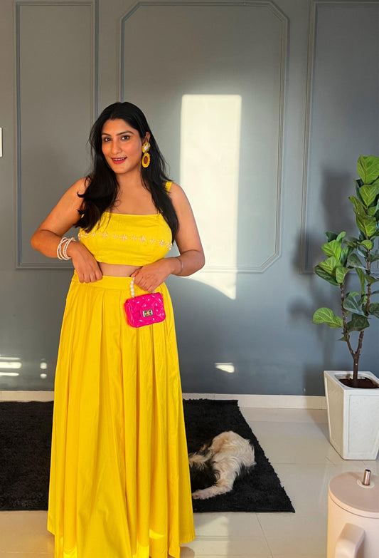 Hand embroidered Cotton Linen Sunflower Kurta Set