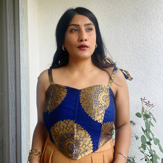 Enchanting Blue Mirror-Work Patchwork Co-Ord Set