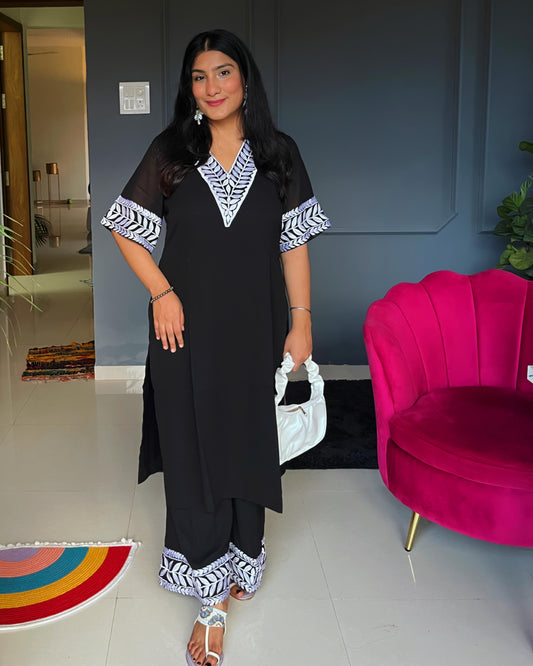 Hand embroidered Cotton Linen Sunflower Kurta Set