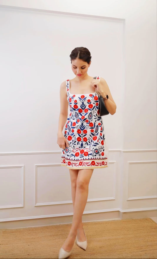 Hand embroidered Cotton Linen Sunflower Kurta Set