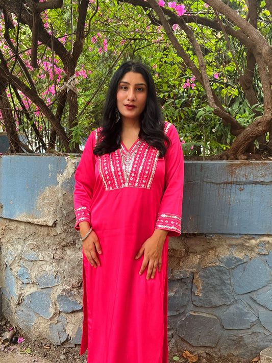 Pastel Pink Mirror-Work Patchwork Co-Ord Set