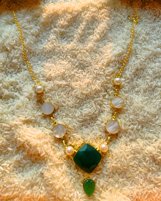 Royal Green Drape Dhoti Skirt With Oversized Shellwork Top