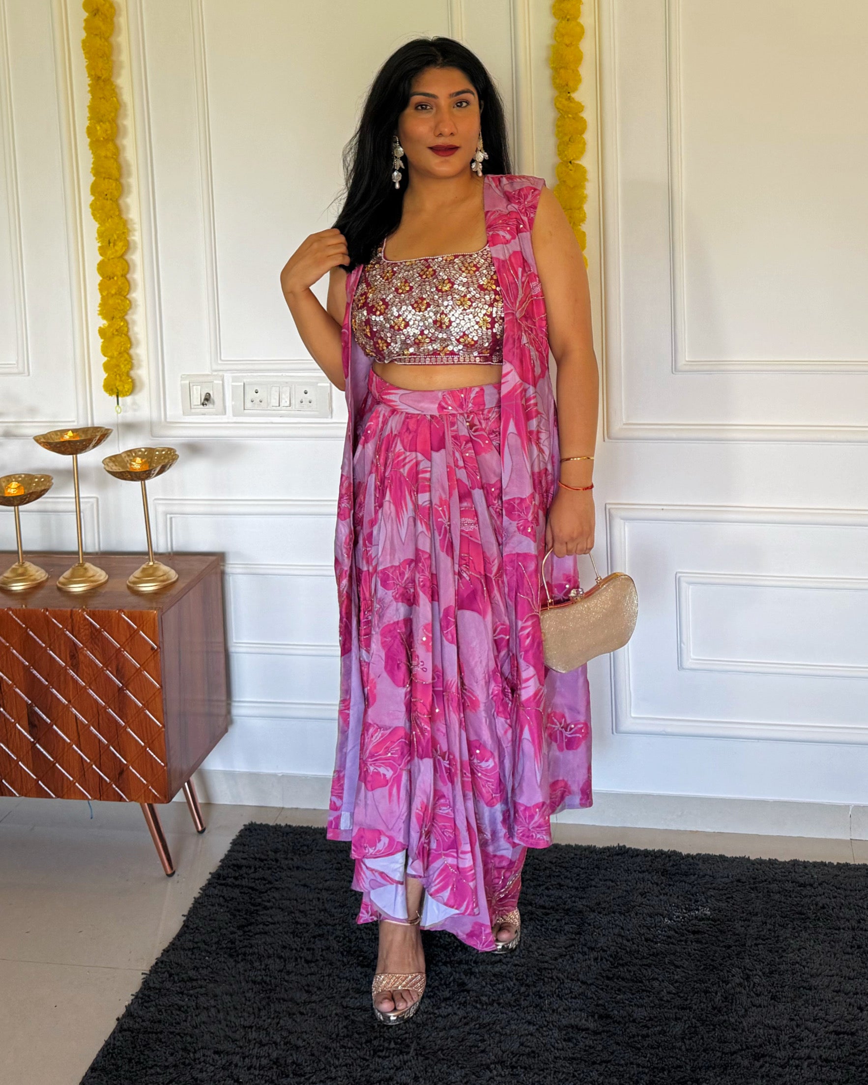 Lilac Luxe – Floral Print Dhoti Skirt & Sequin Blouse Co-ord